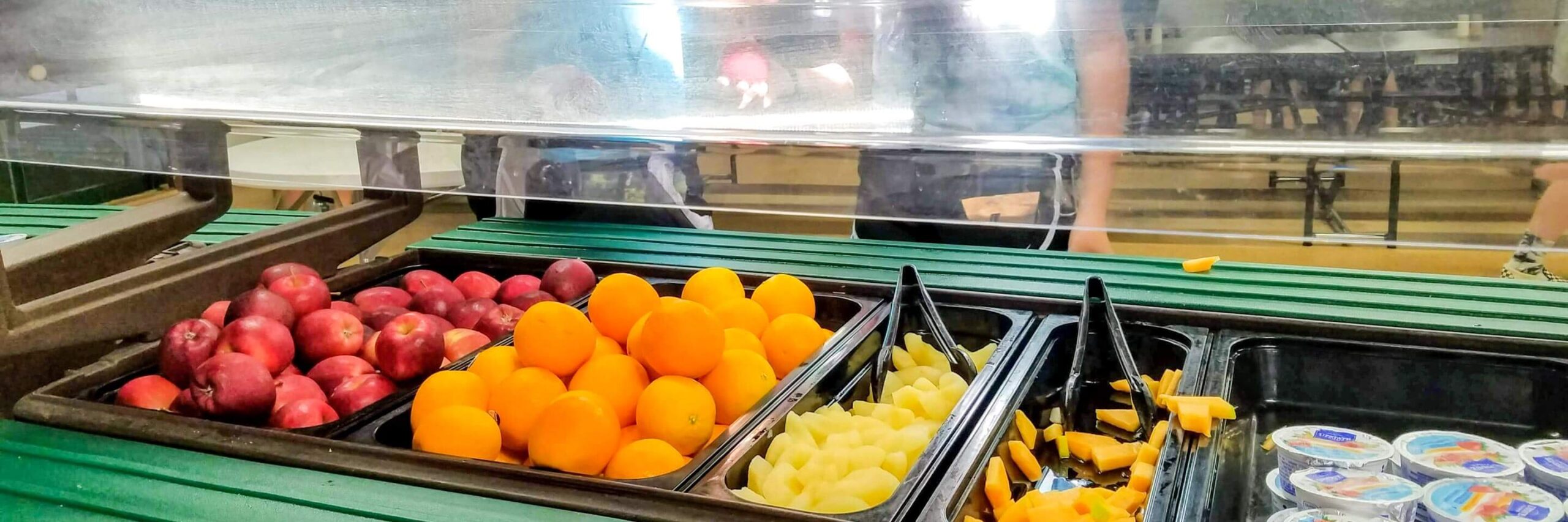 Fresh fruit is available at every meal, along with salad bar, sandwich bar, and pasta alternatives for lunch and dinner. There are fresh-baked rolls, cakes, muffins, and cookies – and a lot more.